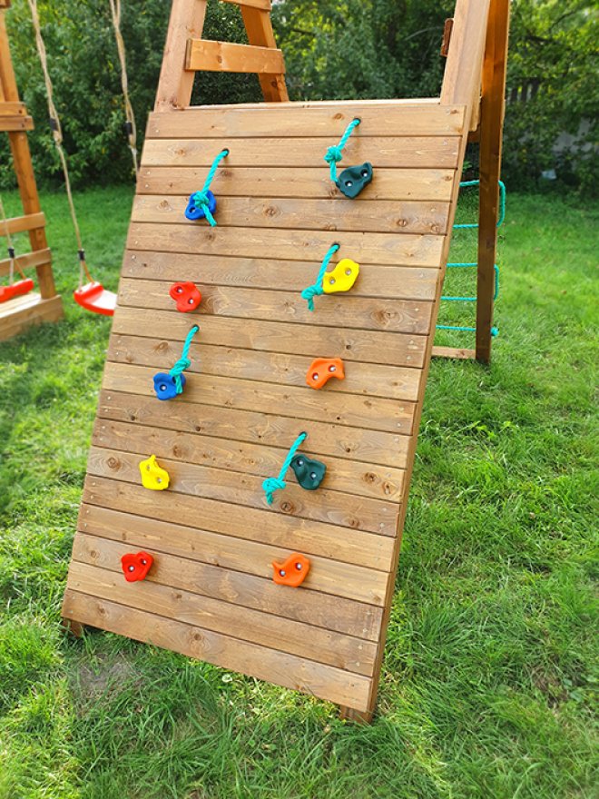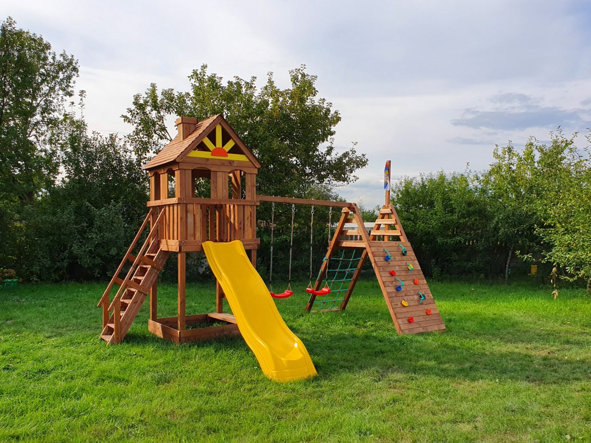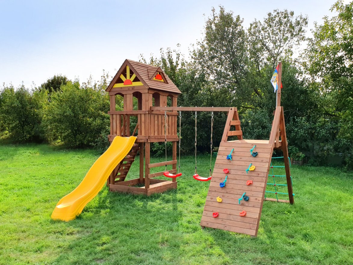 На такой площадке каждый найдет себе занятие по интересам, ведь у данной модели богатая комплектация: яркий двухволновой скат 2.7 м, песочница, качельный модуль с двумя качелями, скалодром и сетка-лазалка! Играя на этой площадке дети не только весело проводят время, но и развиваются физически: развивают ловкость, гибкость, тренируют вестибулярный аппарат, становятся сильными и хорошо кушают после активных игр!