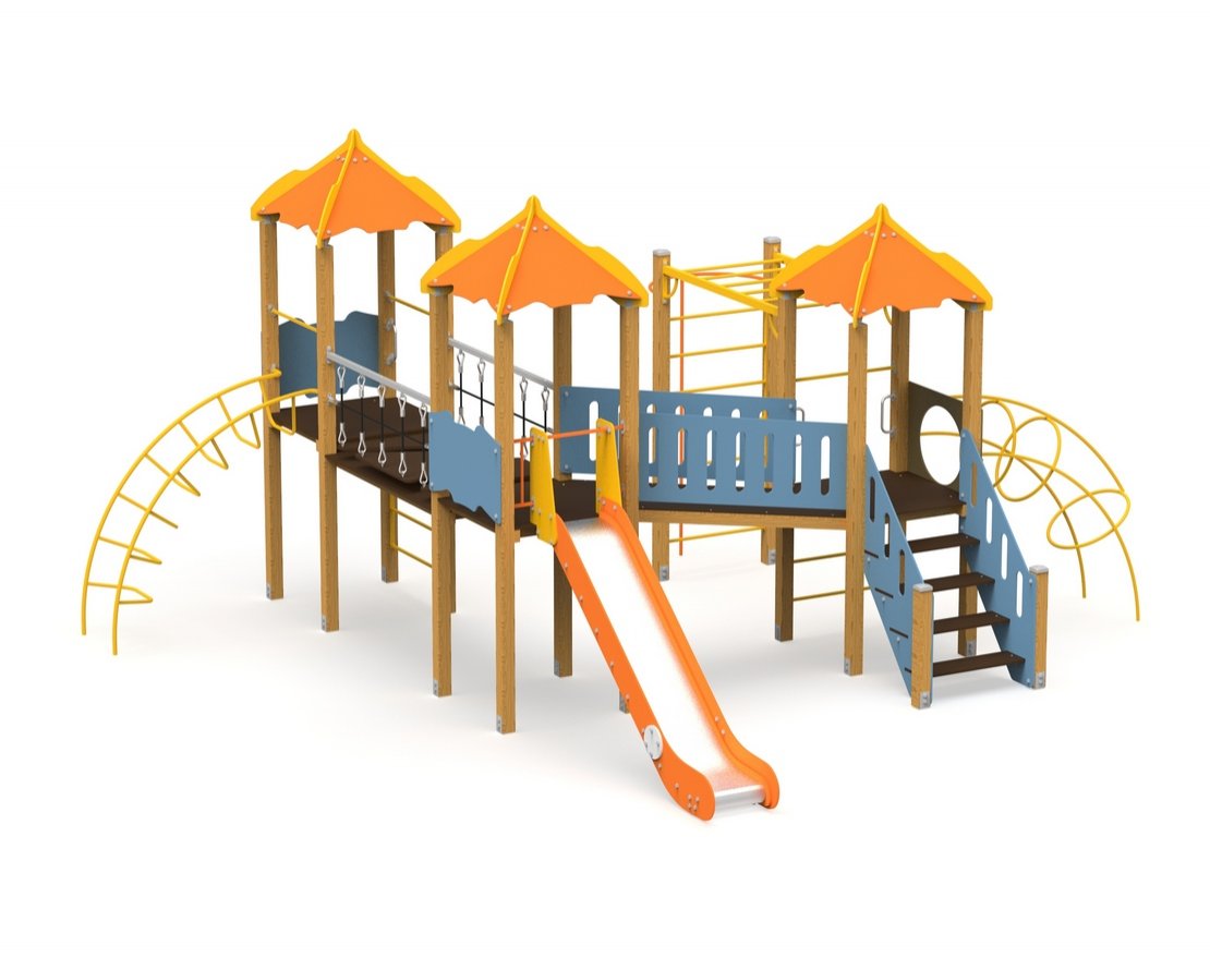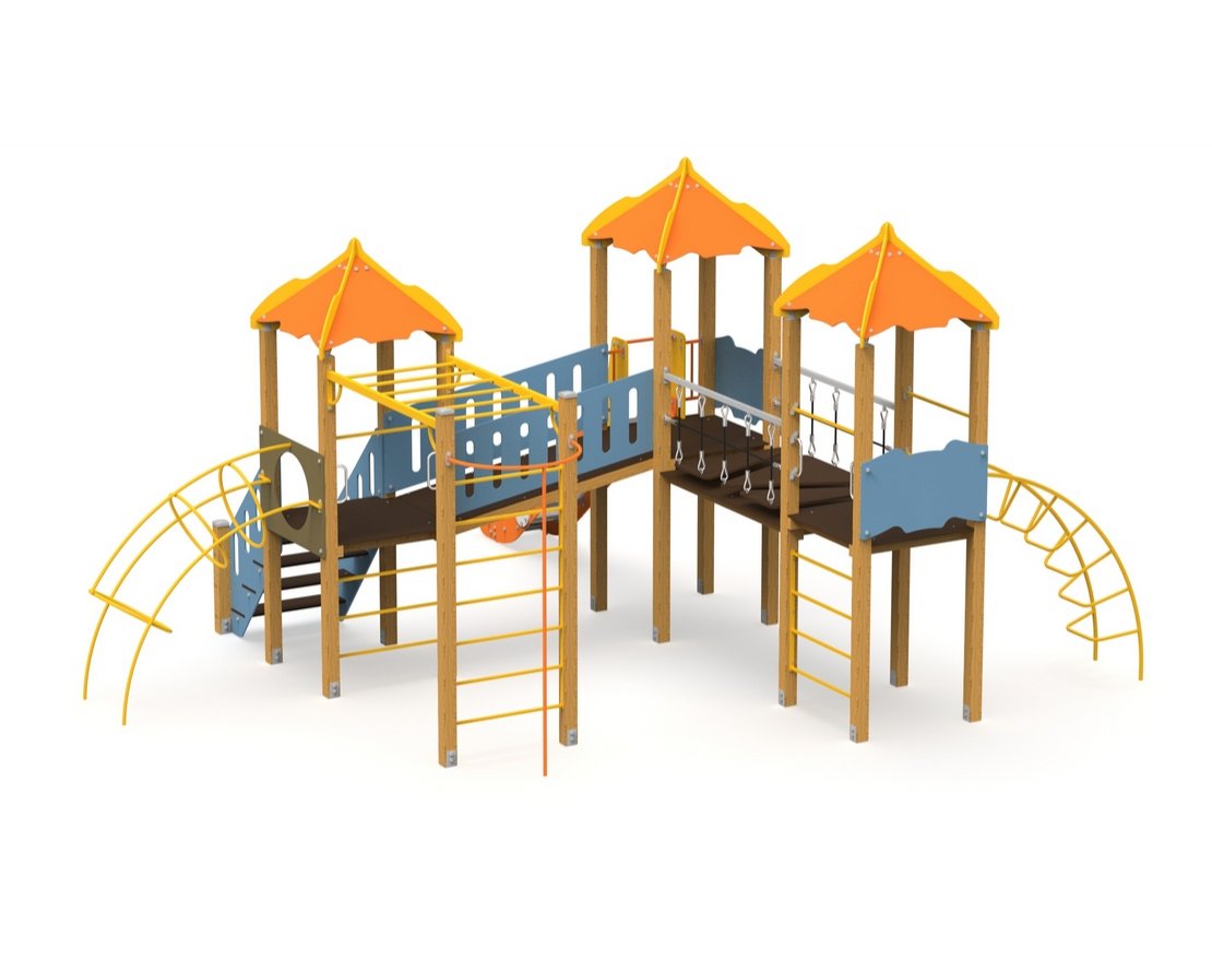 Детский игровой комплекс предназначен для организации детского досуга и физического развития на детских площадках, в детских садах, школах, парках, дворах и местах отдыха. Изделие представляет собой сборно-разборную конструкцию с декорациями из фанеры ФСФ.