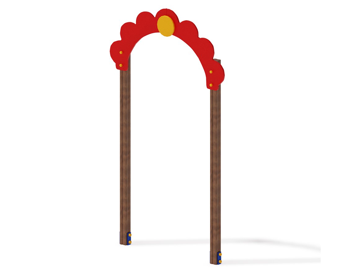 Представляет собой сборную конструкцию выполненную из двух клеёных брусьев не более 100х100мм высотой 1900мм, и декоративных частей из влагостойкой фанеры толщиной 18 мм, кромки фанеры тщательно шлифованы, окрашены в красный цвет.