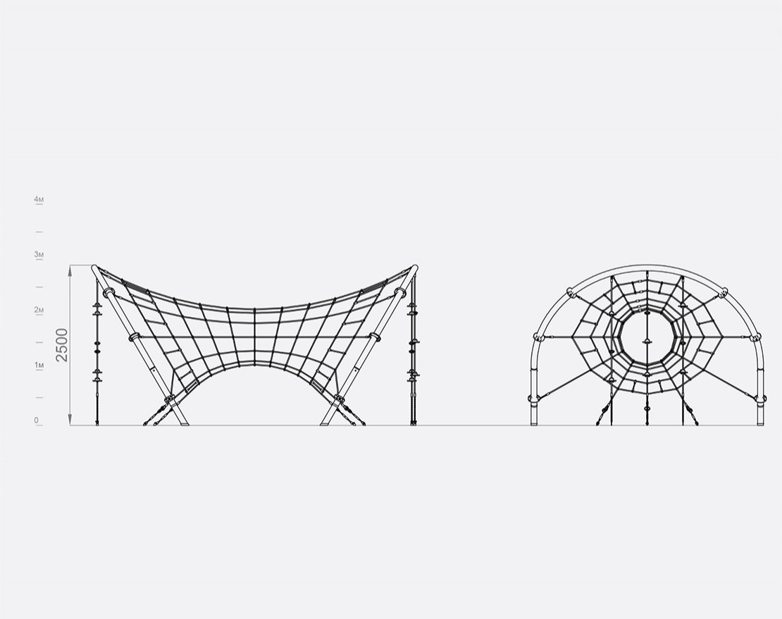 Представляет собой конструкцию, состоящую из металлического каркаса, канатных сеток и канатных строп с пластиковыми уступами.