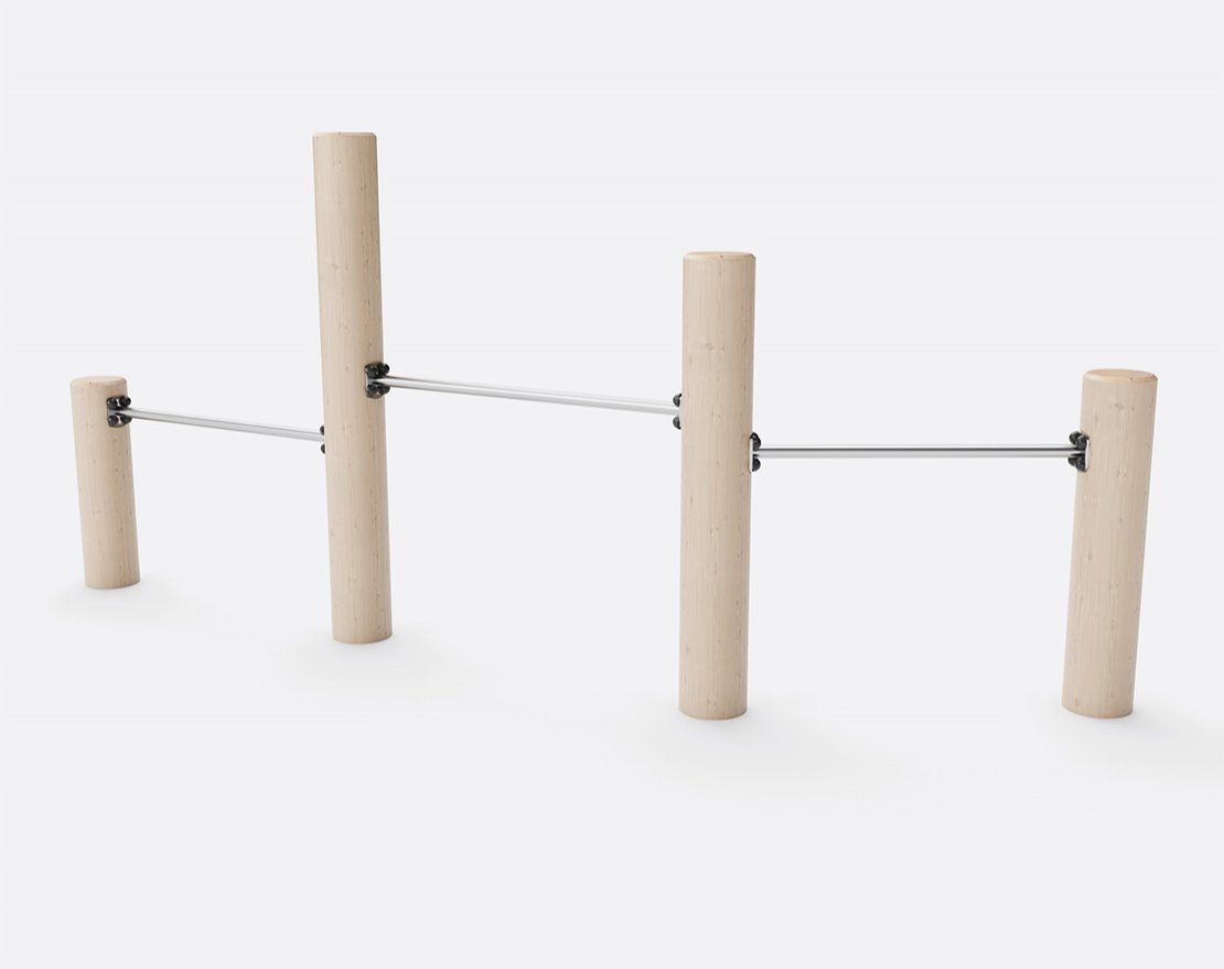 Состоит из опорных столбов и металлических перекладин. Представляет собой турник.