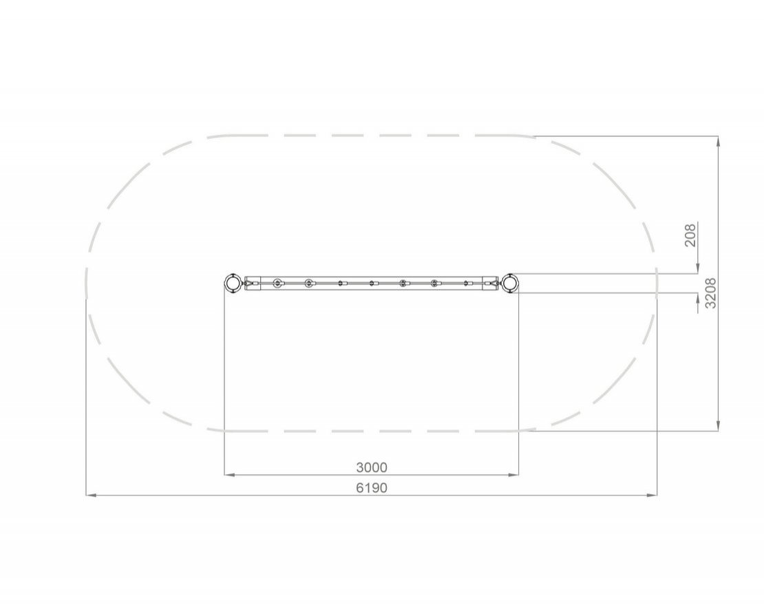 Состоит из металлических опорных стоек, канатной стропы с рукоходом и каната квадратного сечения «Викинг». Рукоход выполнен из ручек различной формы и канатных подвесов.