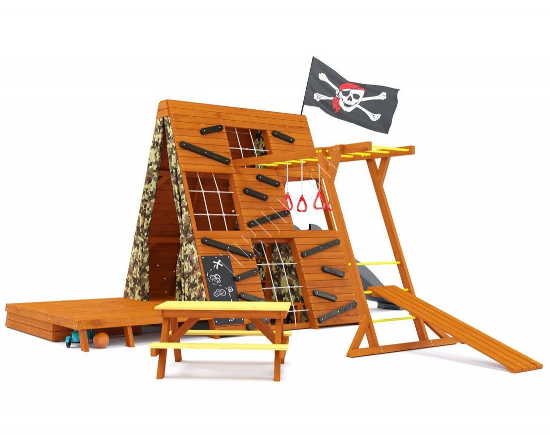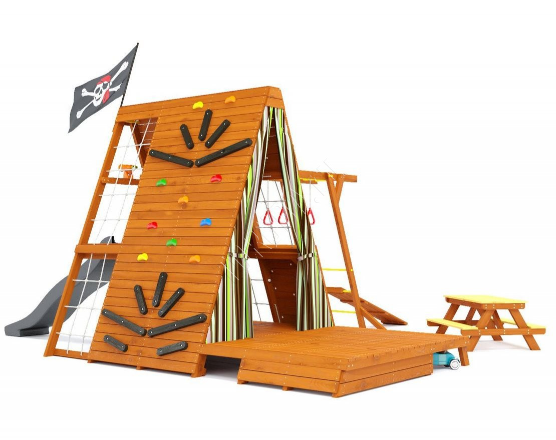 Детский спортивный домик - идеальный подарок для активных детей. Он представляет собой не только игровую площадку, но и спортивную тренировочную базу.
