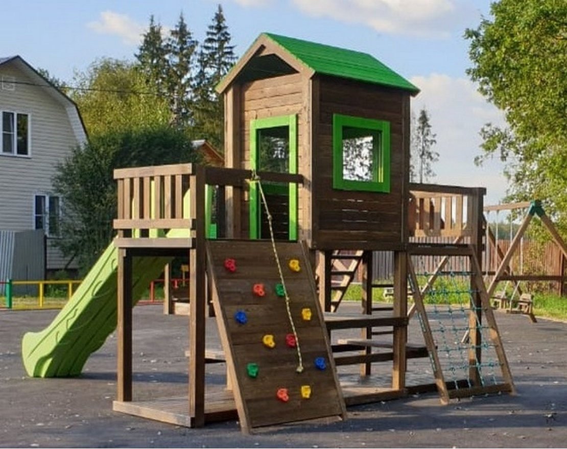 Надежная и долговечная детская игровая конструкция (конструктор) из древесины сибирской лиственницы для детской площадки в зонах общественного пользования: парки, скверы, дворы многоквартирных домов, территории детских садов, школ и торгово-развлекательных центров, коттеджные поселки. Поможет организовать интересный досуг детям и отлично сочетается с городским и природным ландшафтом.