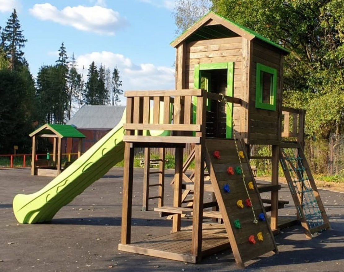 Рекомендованная распределенная единовременная нагрузка: игровая платформа 350кг., встроенный столик с лавочками 200кг., деревянная лестница 100кг., скалодром 150кг., канатная лестница 150кг., рукоход 150кг, скат 150кг.