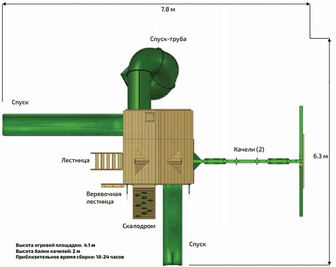 Оригинальный внешний вид игровой площадки Эверест Делюкс 2 с высокими башнями и тремя горками отлично впишется в ландшафт загородного участка или детской площадки, а его функциональность понравятся детям. Эверест Делюкс 2 — комплекс для организации активного детского досуга, который включает в себя три уровня: первый — это песочница и столик со скамейками, второй — игровая платформа в виде форта с крышей, третий — закрытая башня с выходом на горки. Благодаря такой конструкции, а также наличию большого количества игрового оборудования детская игровая площадка позволяет интересно проводить время одновременно целой группе детей разного возраста и уровня физической подготовки.