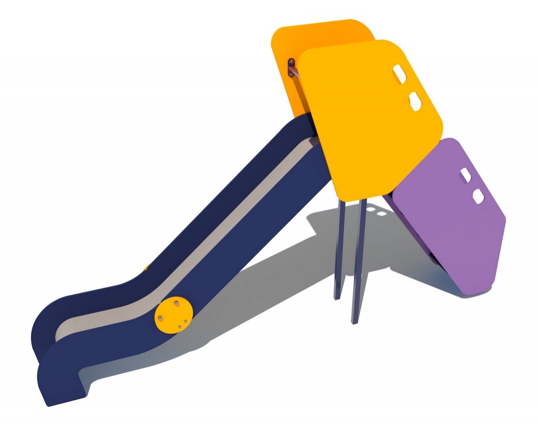 Скат горки изготовлен из единого листа нержавеющей стали толщиной 1,5 мм и утоплен в паз фанерного борта. Наличие бортов горки высотой 100 мм обязательно в целях исключения травмирования детей. Горка должна иметь стартовую площадку с перекладиной сечением Ø 27 мм, заставляющую ребенка присесть, полосу разгона и участок торможения. Ступеньки лестницы горки должны быть выполнены из ламинированной нескользящей влагостойкой ламинированной фанеры толщиной 18 мм.