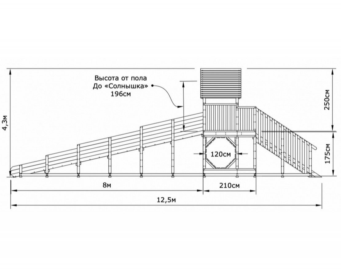 Конструкция горки выполнена из высококачественной древесины, что делает ее прочной и долговечной.