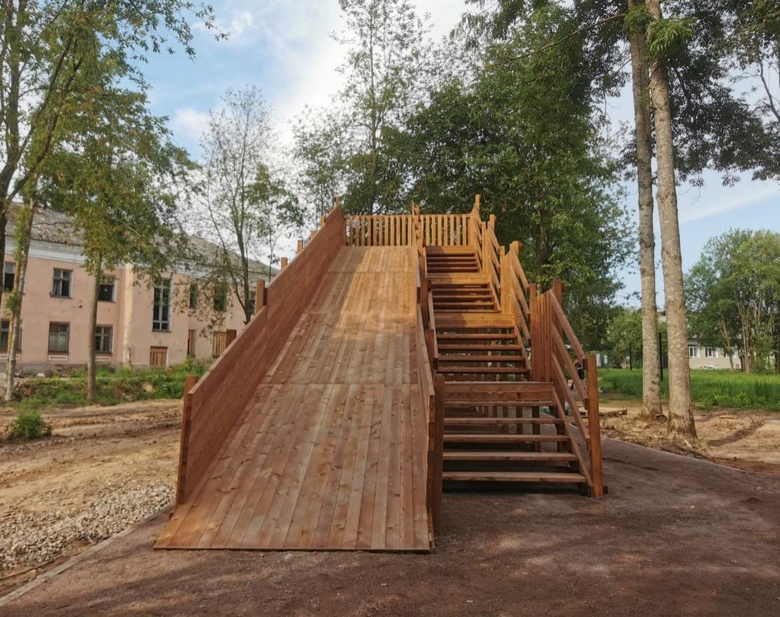 Зимняя деревянная заливная горка Морозко 12м макси- это модель специально разработана для общественных мест. В основании конструкции сделана арка и две лавочки, куда можно сложить вещи или сесть передохнуть от гонок. . Лестница сделана промежуточными платформами, высота ската 4 метра!