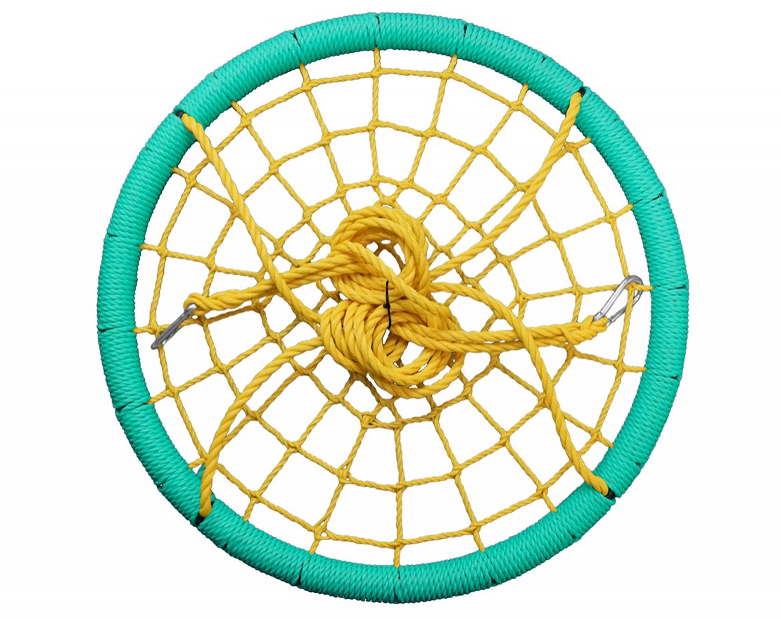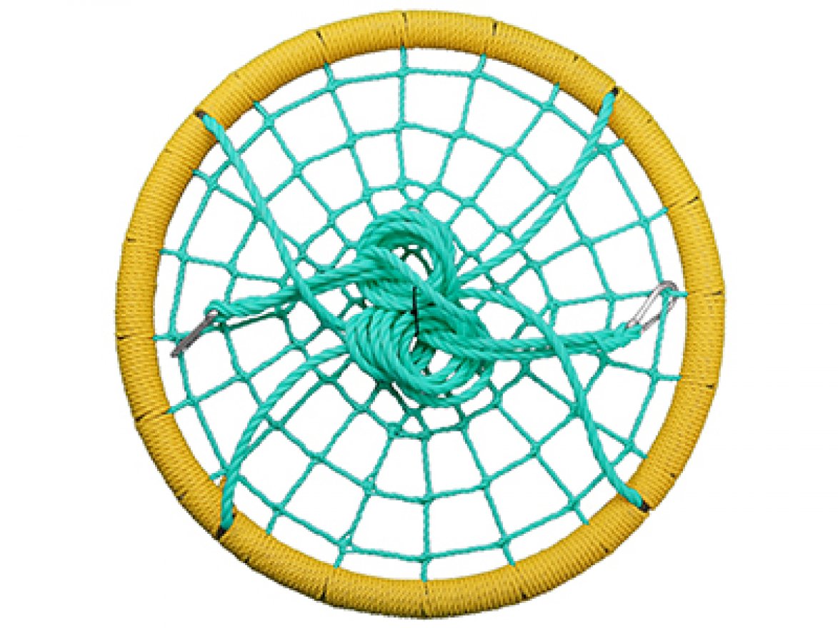 - Оплетка основания качелей - трёхпрядный канат толщиной 14мм. Подвесы - канат 14 мм. Длина каждого из подвесов 2 м. Подвесы легко регулируются по высоте.