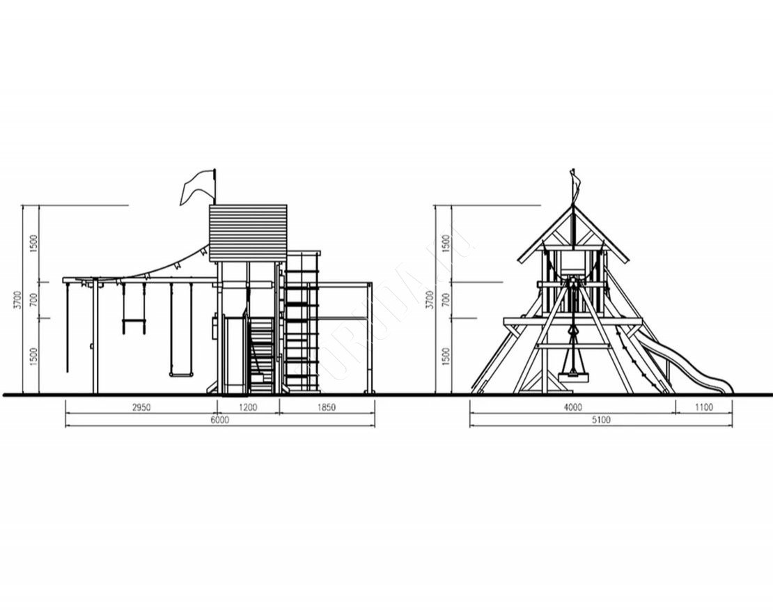 Площадка Галиот 2 обладает довольно широким функционалом (который по желанию можно легко расширить). А на качелях могут кататься даже родители! Детская площадка предназначена для дачи, коттеджа.