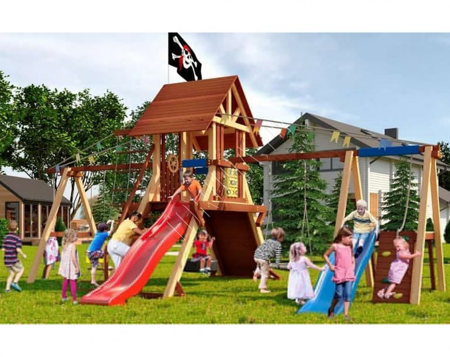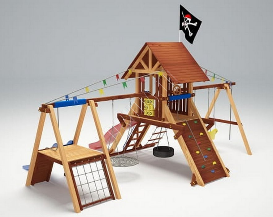 Площадка Галиот 7 обладает довольно широким функционалом (который по желанию можно легко расширить). А на качелях могут кататься даже родители! Детская площадка предназначена для дачи, коттеджа.