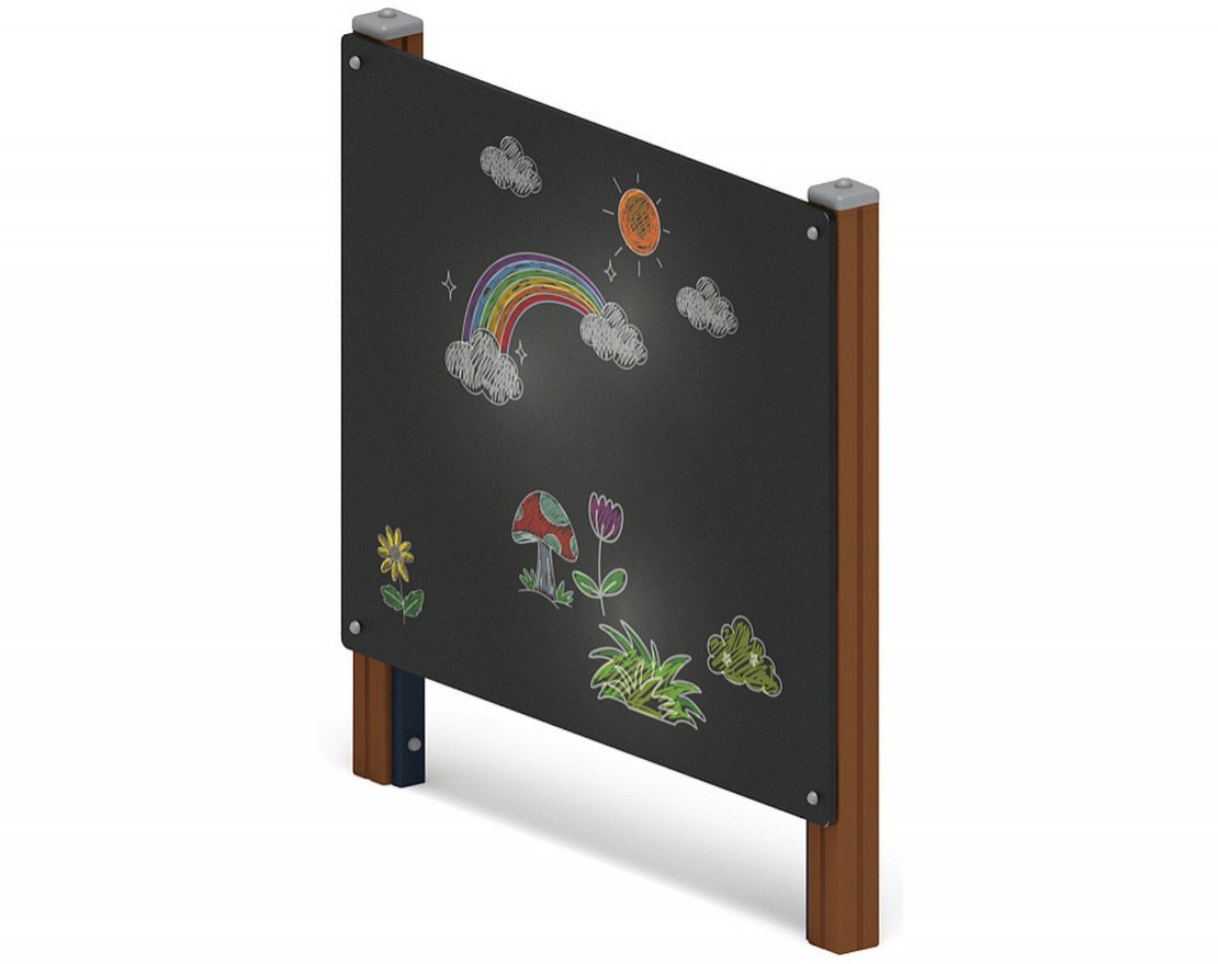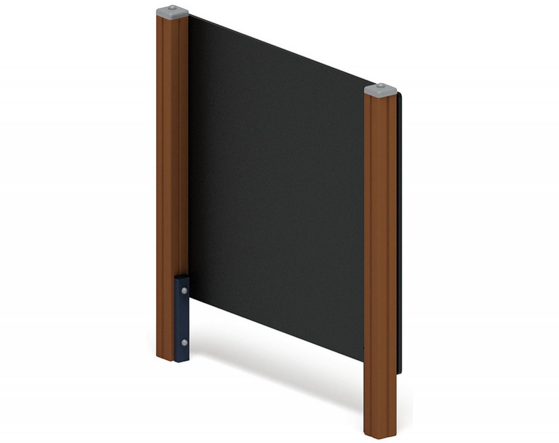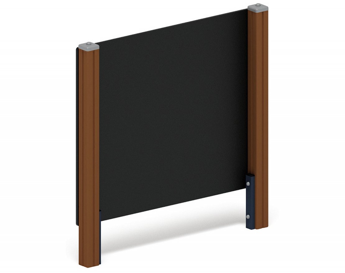 Выполнена в виде сборной конструкции, которая состоит из 2-х стоек и щита. Стойки выполнены из клееного бруса 100х100 мм, длиной 1800 мм, окрашенного в коричневый цвет. Щит - из ламинированной фанеры толщиной 18 мм. Габарит щита 1500х1220х18 мм