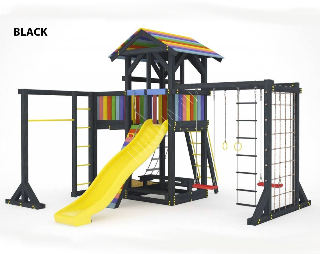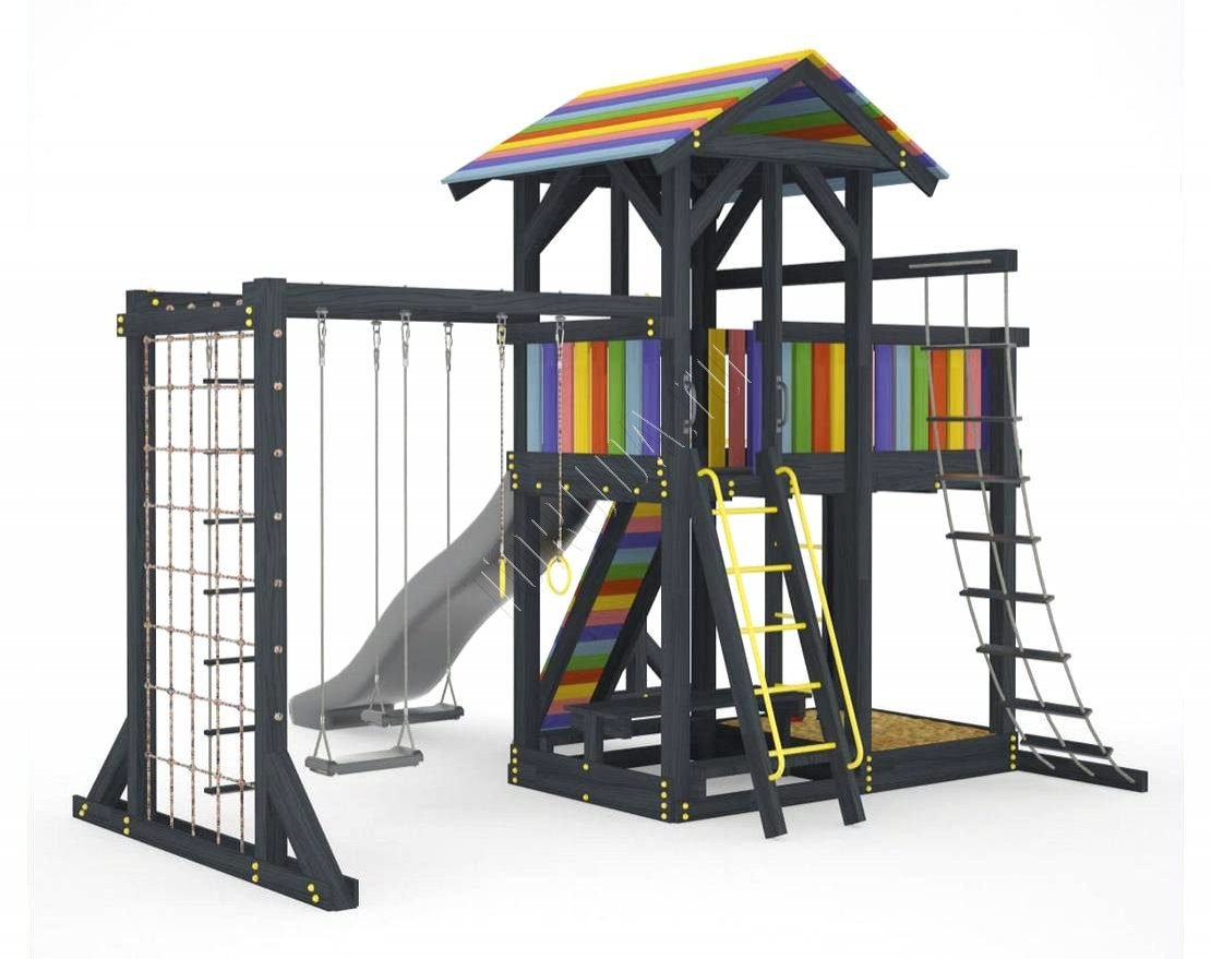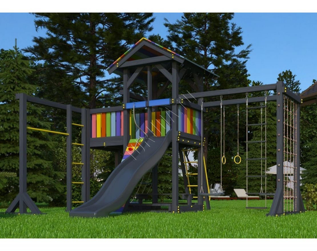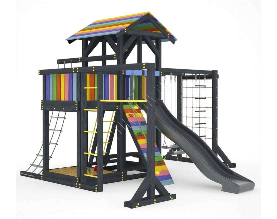 Детская площадка обладает довольно широким функционалом, предназначена для дачи, коттеджа.