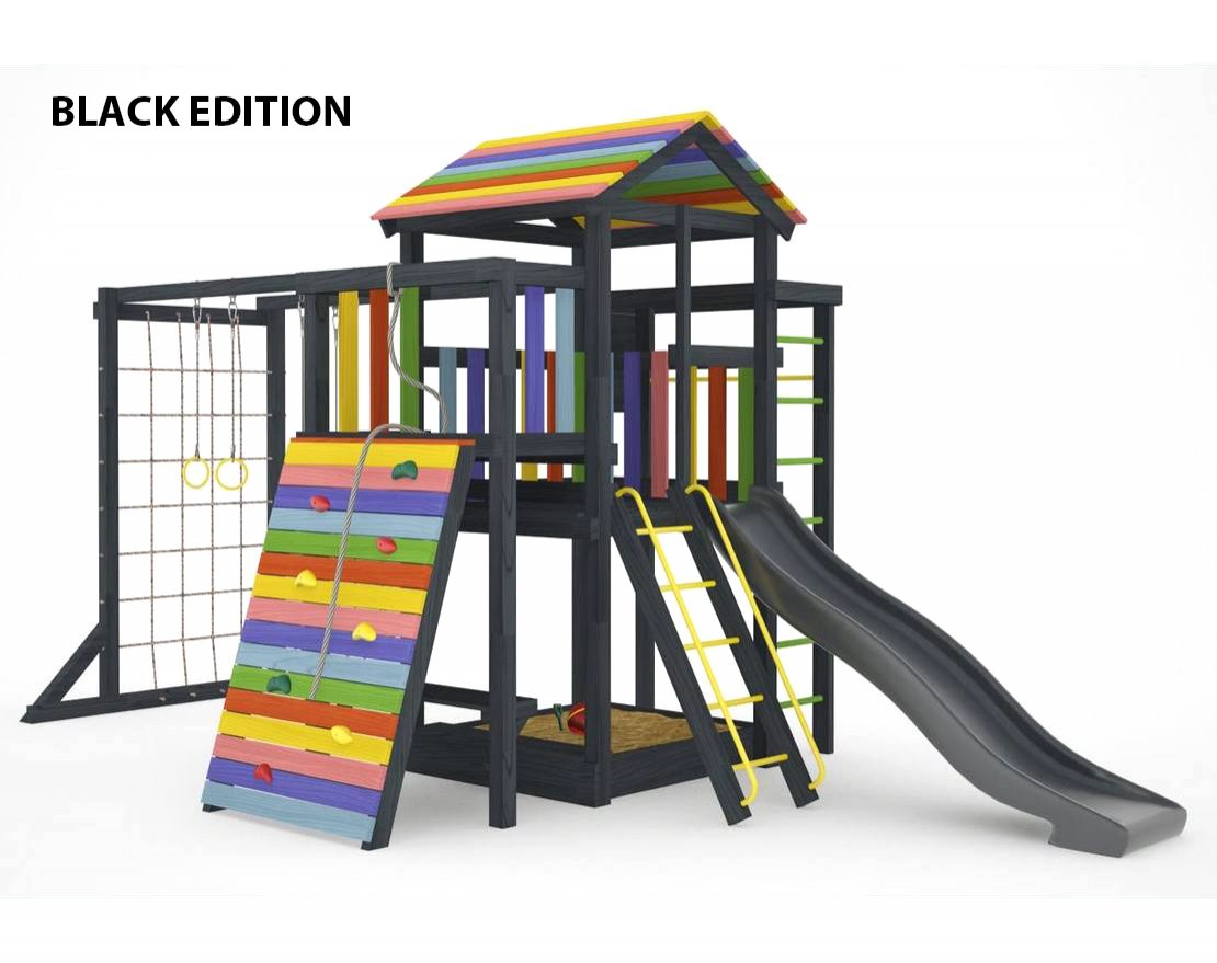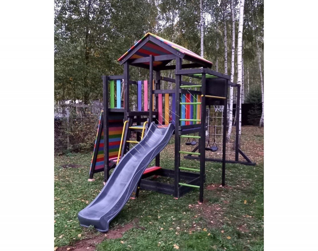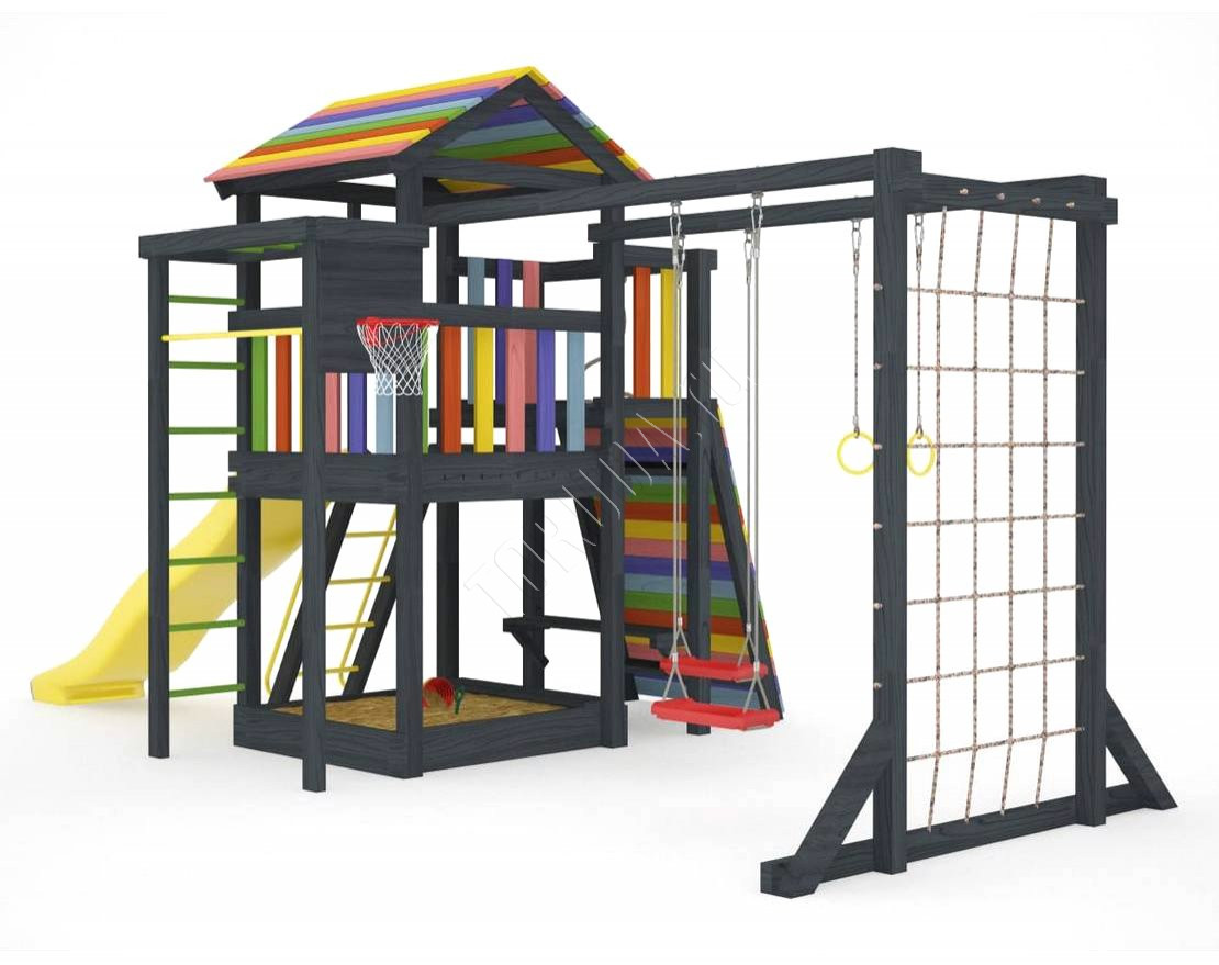 Детская площадка обладает довольно широким функционалом, предназначена для дачи, коттеджа.