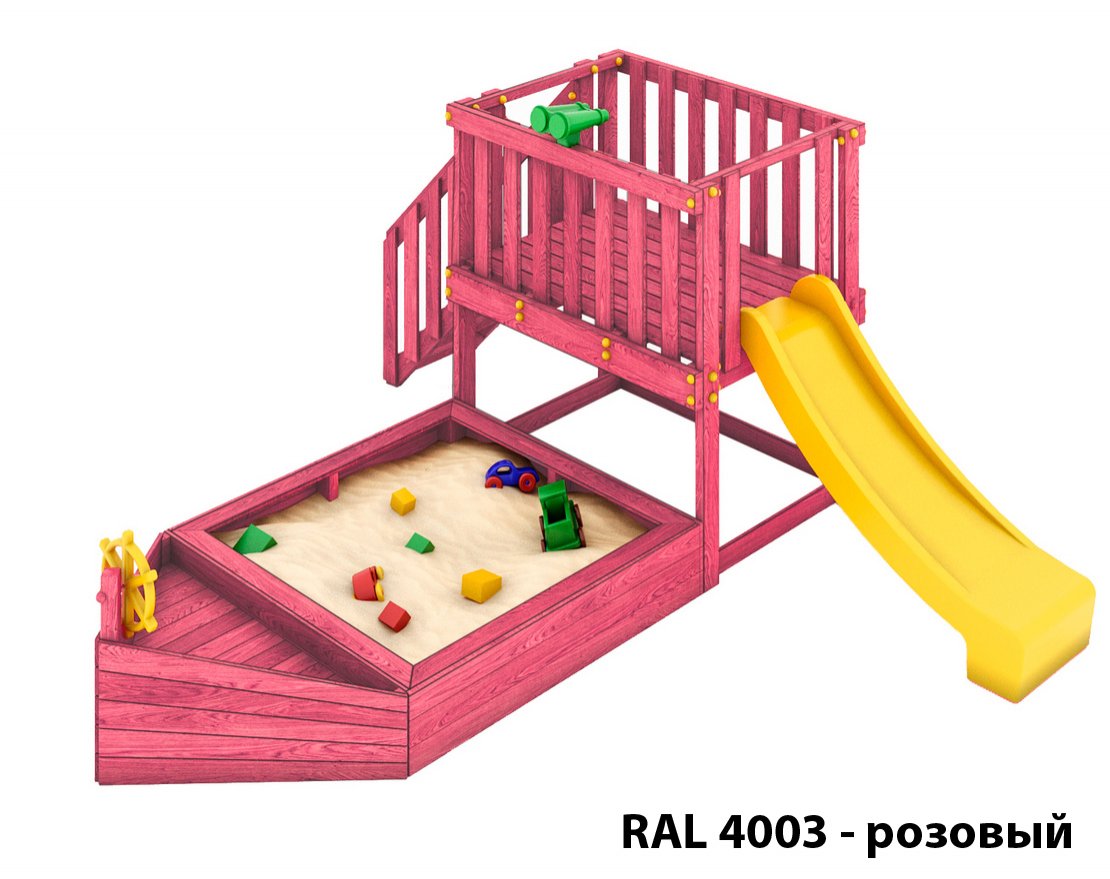 Детская песочница-кораблик и капитанский мостик с горкой с высоты 900 мм.