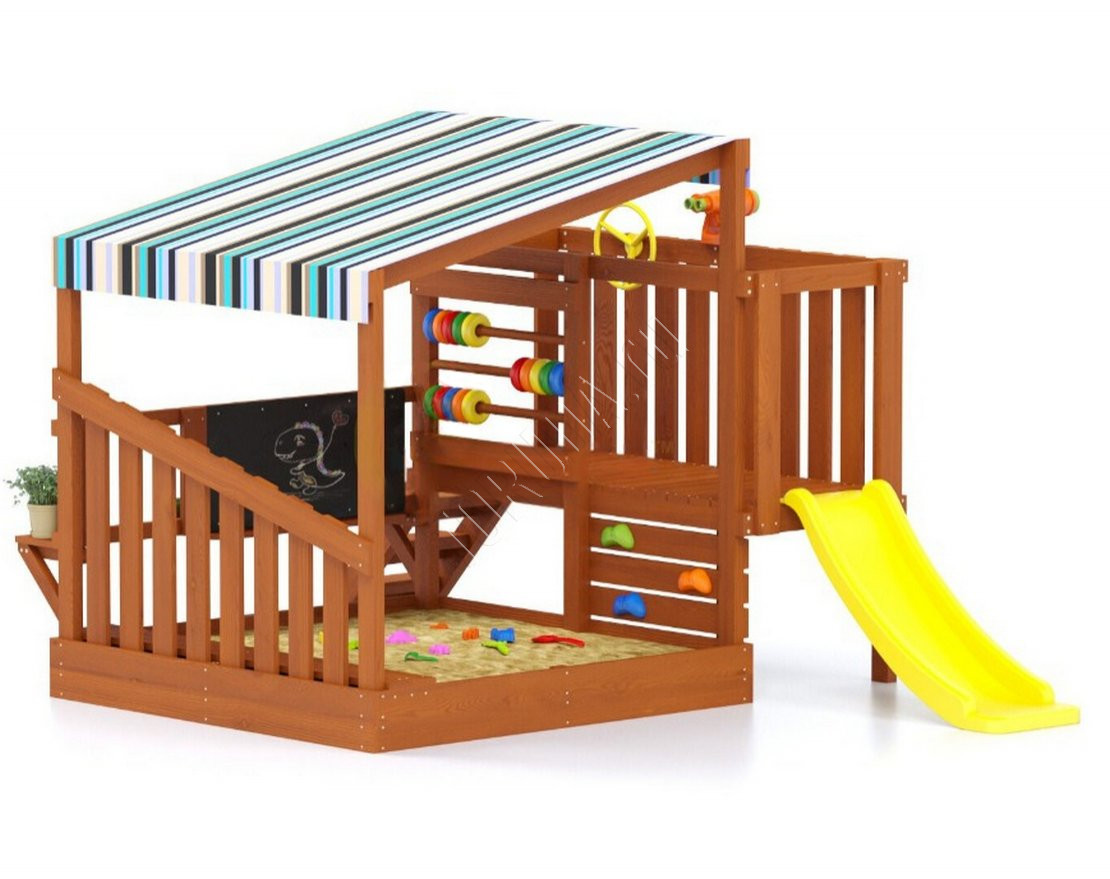 Игровой домик с крышей - защищает от солнца и дождя, создаёт уютную атмосферу для игр и отдыха.