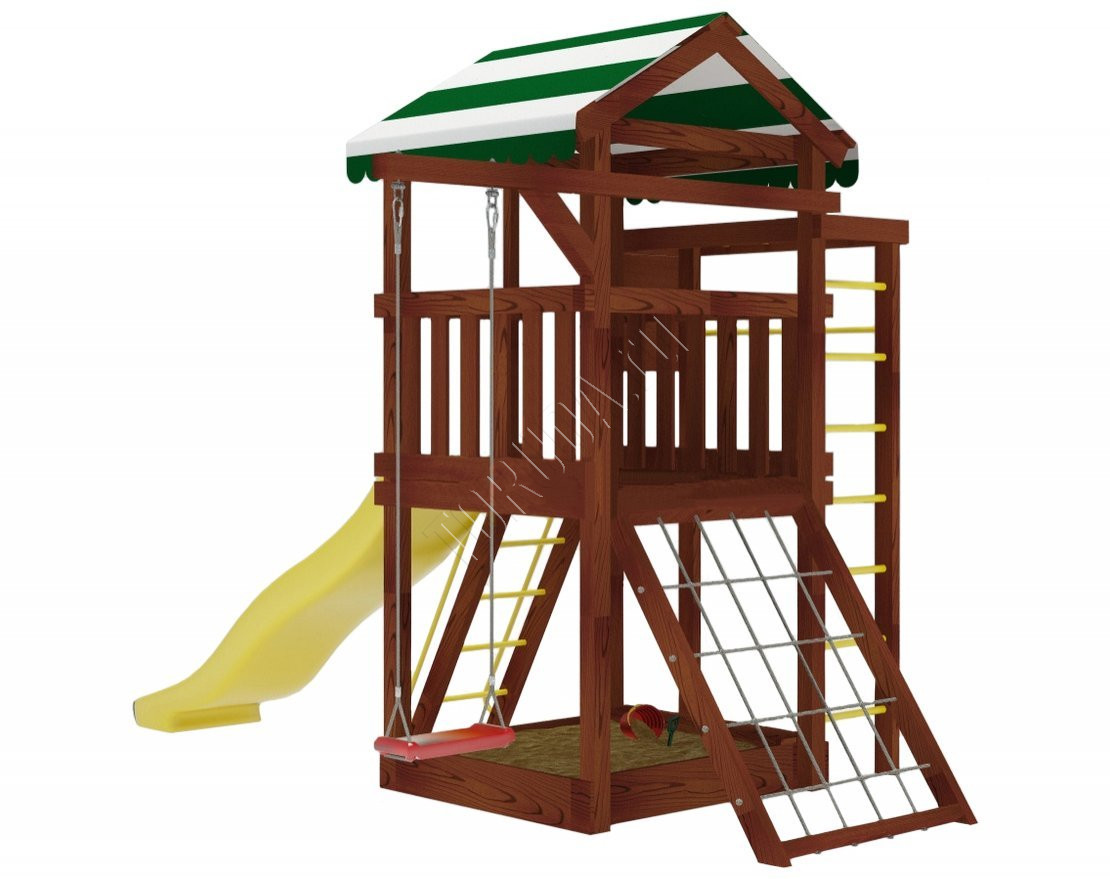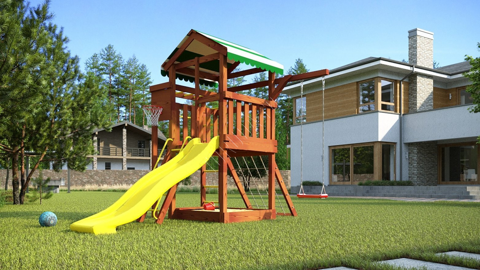 - Развитие через игру: спортивные элементы, такие как рукоход, турник, сетка-лазалка и шведская стенка, способствуют физическому развитию, улучшают координацию и укрепляют мышцы. Качели и горка добавляют игровые моменты, создавая идеальный баланс между спортом и развлечением.