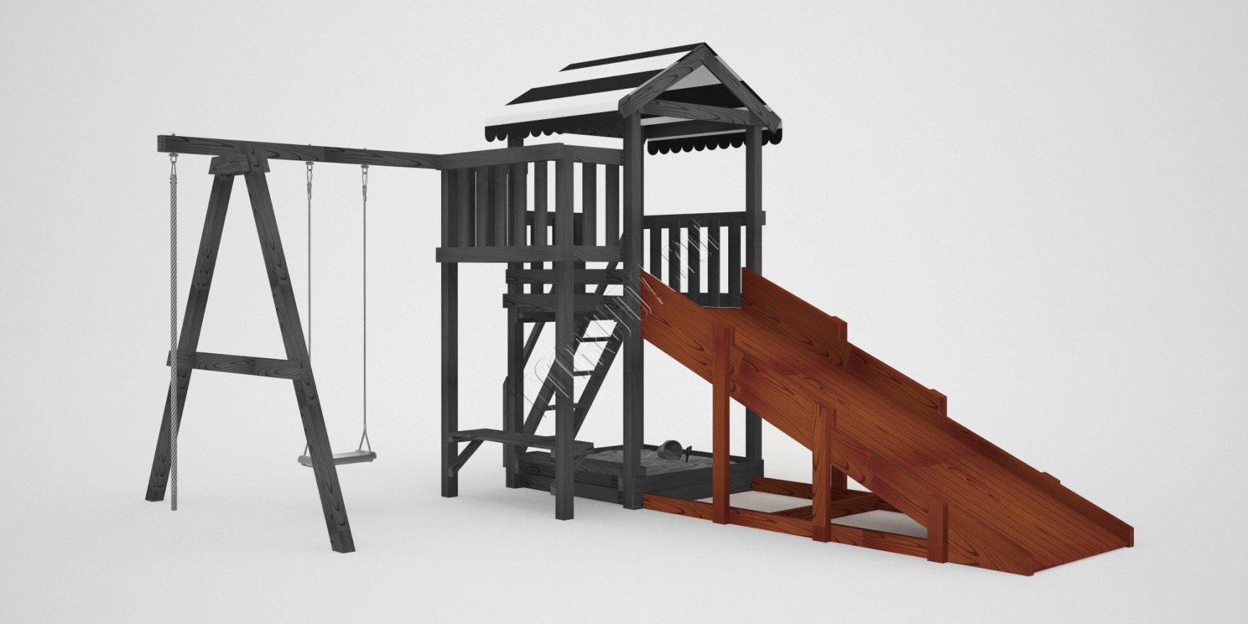 Основным материалом выступает клееный брус сечением 75х75 мм. Он не меняет свою геометрию со временем, благодаря чему игровые комплексы долго остаются надежными. Качество дерева отвечает высоким требованиям ГОСТ. Пластиковые заглушки закрывают металлический крепеж, а шлифованные детали защищают малышей от заноз. Не меньшее внимание мы уделили навесному оборудованию – поставщиком игровых и спортивных элементов конструкции является проверенный бельгийский производитель.