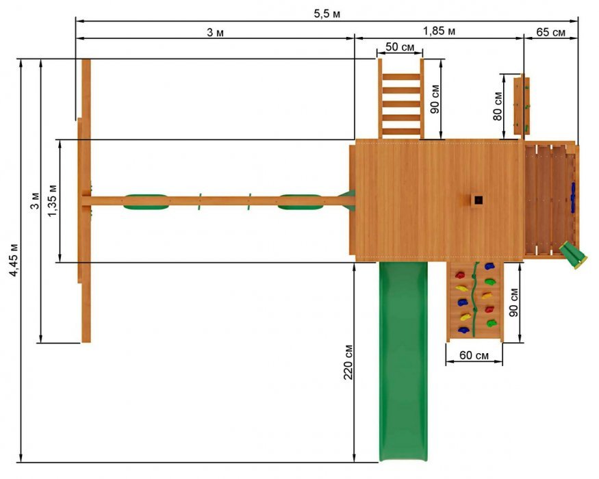 Габариты игрового комплекса для детей составляют: