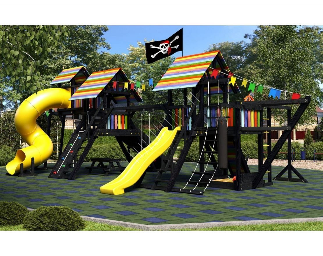 Детская площадка обладает довольно широким функционалом, предназначена для дачи, коттеджа.