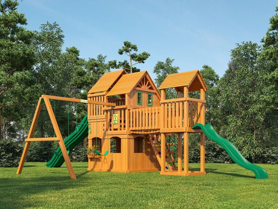 Стоит отметить, что детская развивающая площадка выполнена из качественного пиломатериала. Она также уже окрашена, поэтому не требует дополнительной обработки. Монтаж – единственная проблема, с которой можно столкнуться, но при обращении к опытным профессионалам ее решение может занять максимум сутки. По их истечению можно уже начинать веселую игру.