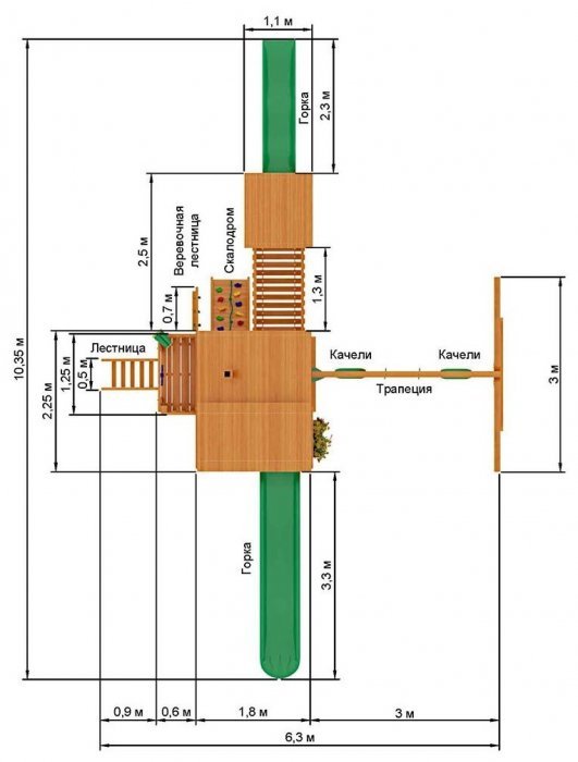 Габариты игрового комплекса для детей составляют: