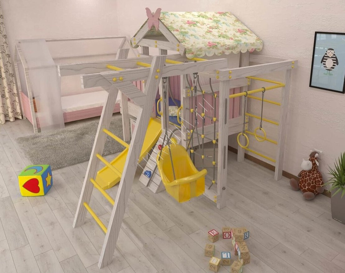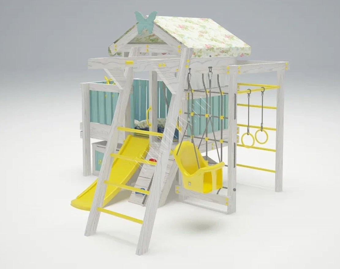 Эта игровая площадка разрабатывалась специально для загородного дома и квартиры. Комплекс интересный и безопасный для ваших детей.