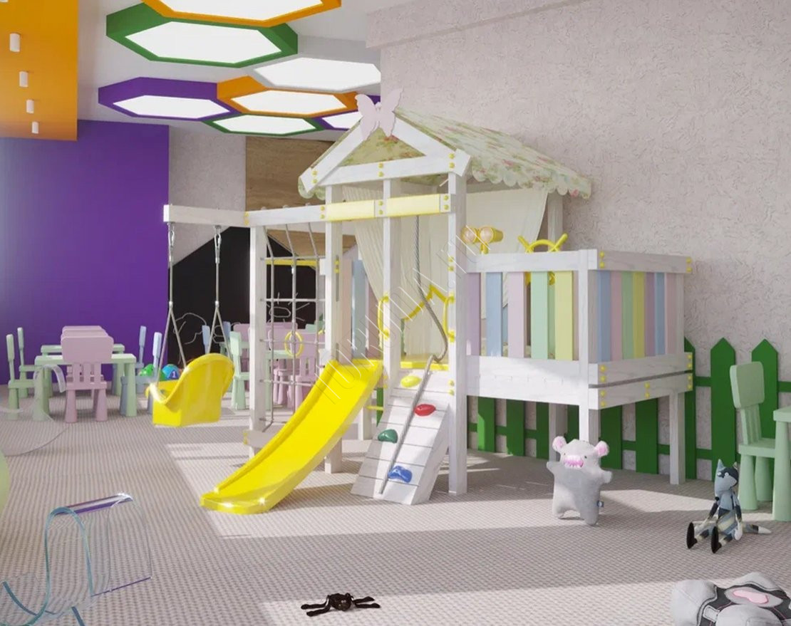 Родители могут оставлять в комплексе даже самых маленьких ребят, не волнуясь за их безопасность. Конструкция выполнена из натуральной древесины, все детали произведены согласно требованиям ГОСТа.