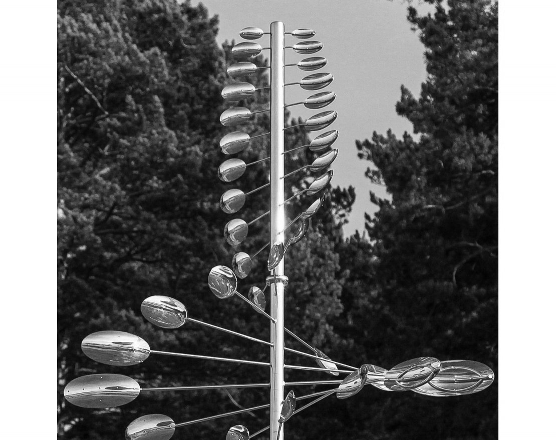Торнадо - это динамичная и воздушная скульптура, призванная передать мощь и элегантность природного явления. Скульптура состоит из вертикальной стойки, служащей ее основой и точкой опоры, и множества круглых пластин, расположенных по спирали вокруг нее.