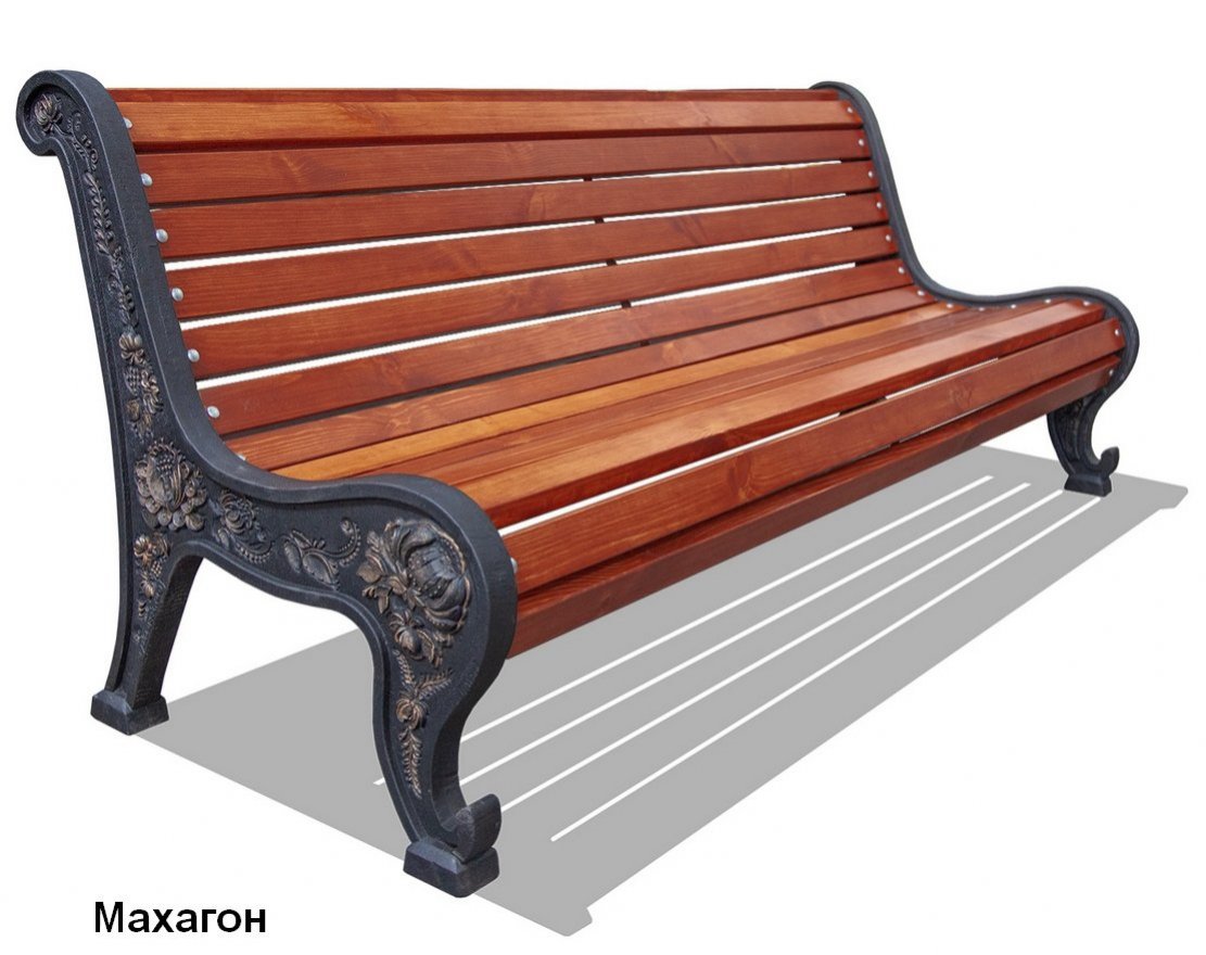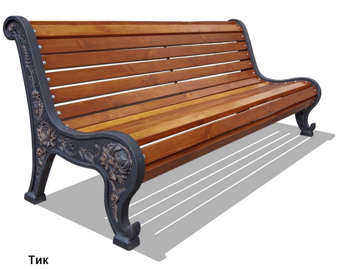 Сиденье и спинка: брус – лиственница (вариант исполнения: композитные материалы) различного сечения. Огнебиозащитные пропитки + тонировочный состав с антисептиком + два слоя яхтного лака с промежуточным шлифованием. Есть возможность выбора цвета из палитры.