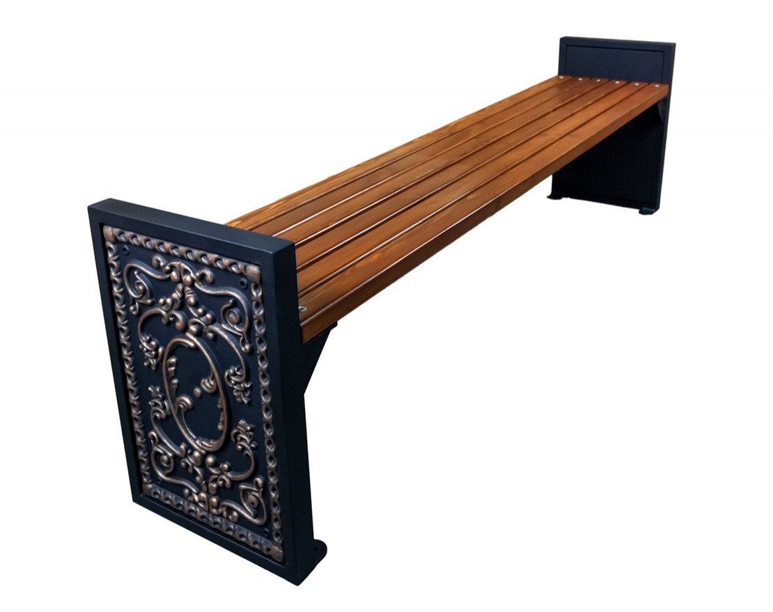 Изящная банкетка «Ампир» станет украшением городского сада или загородного участка. Сидение из бруса лиственницы 30х60 миллиметров удобно для отдыха.