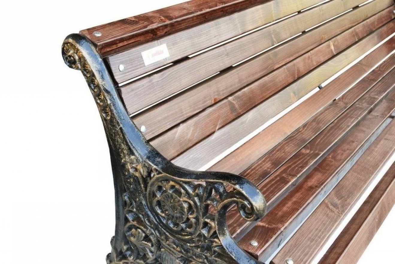 Сиденье и спинка: Брус из хвойных пород древесины. Покрытие - атмосферостойкая лессирующая акриловая пропитка с лаком. Стандартные цвета: Палисандр, Махагон, Тик.