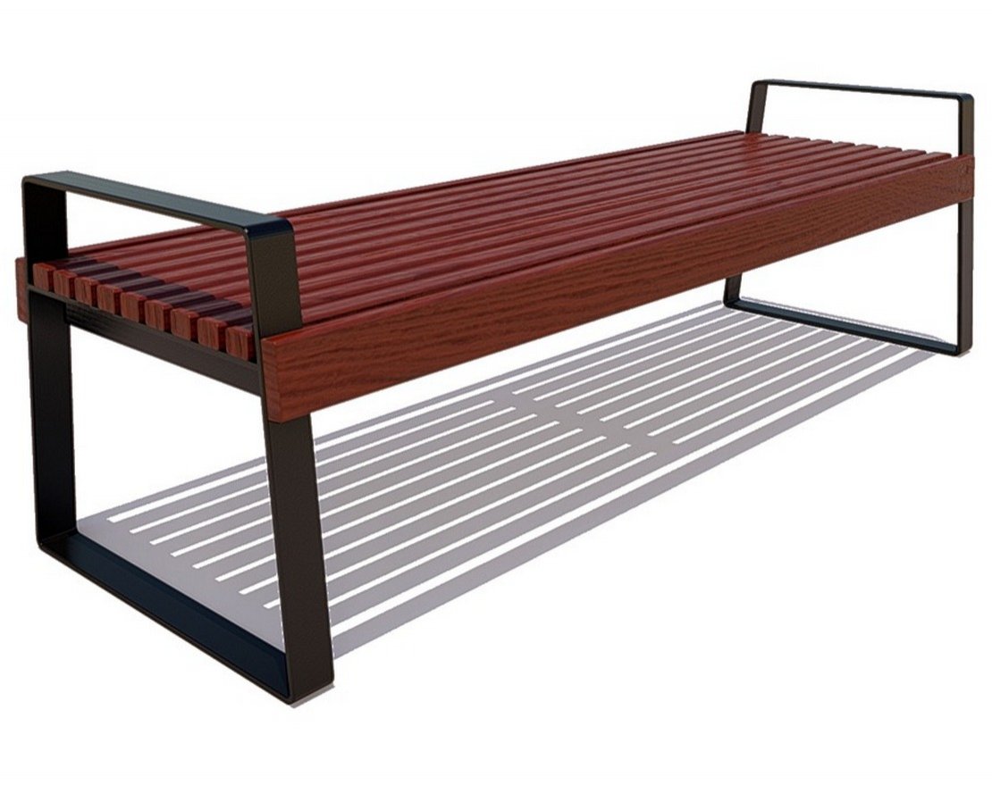 Банкетка Белгород выполнена в минималистичном стиле. Она очень надежна. Опоры представляют собой толстостенную стальную полосу. В качестве защиты использована полимерная краска. Брус обработан спецсоставами, благодаря которым древесина легко выдерживает воздействие негативных факторов, типичных для открытых пространств.