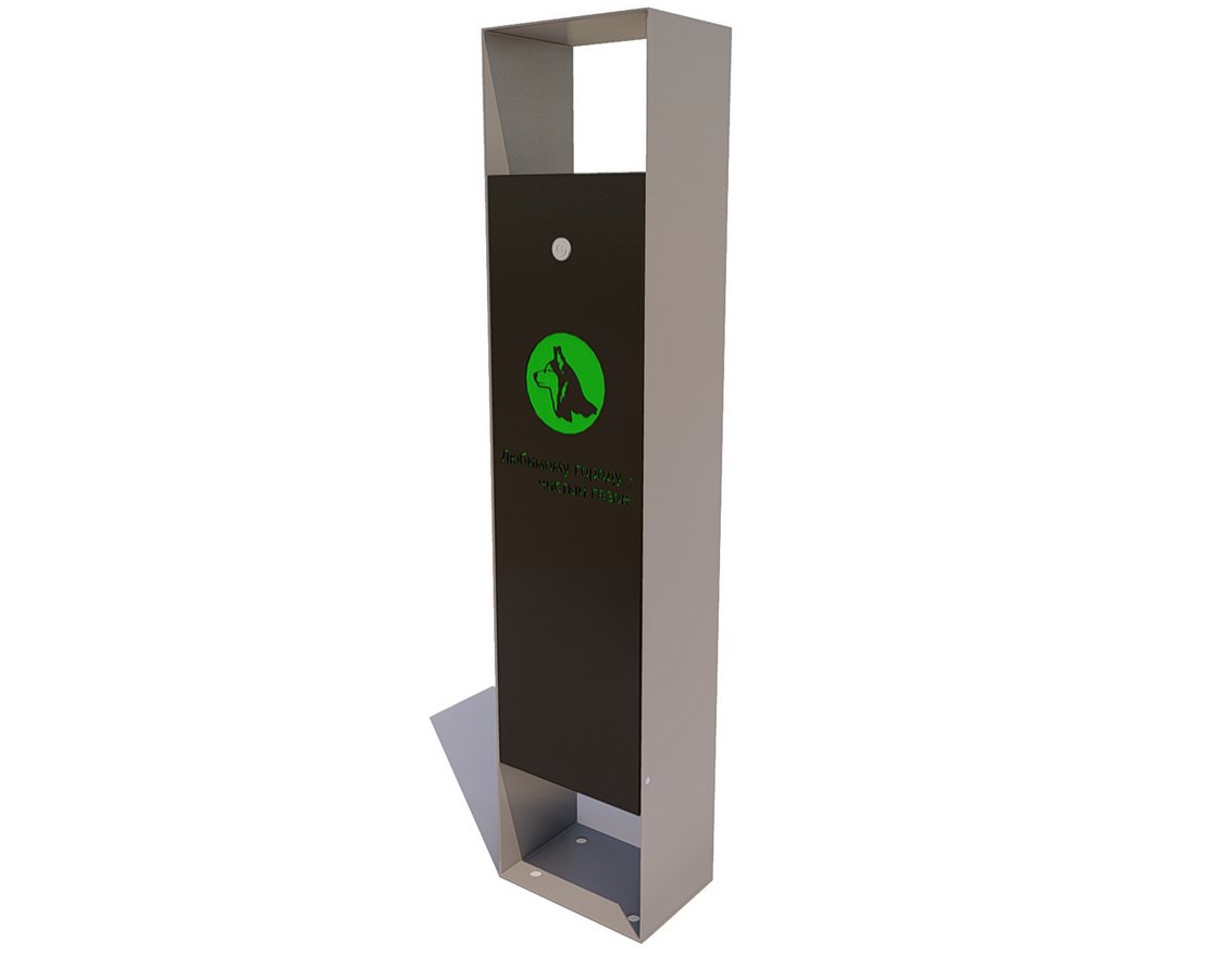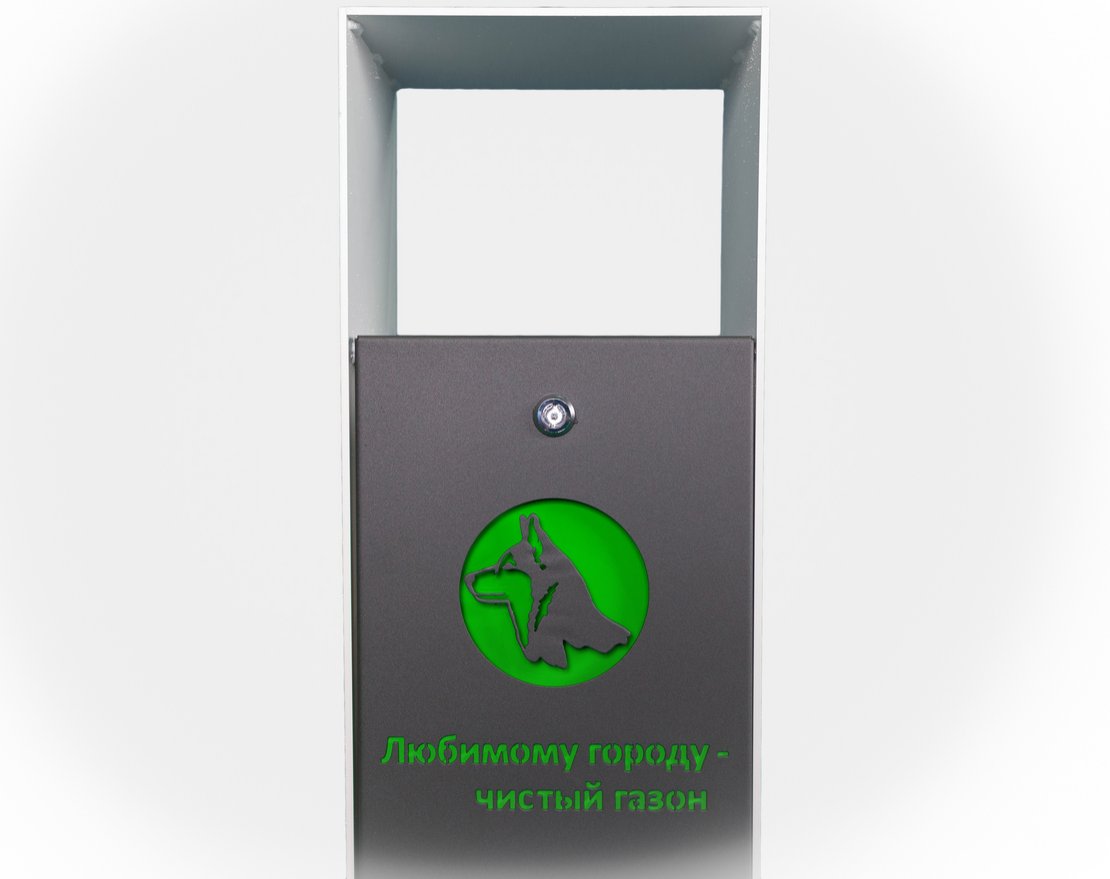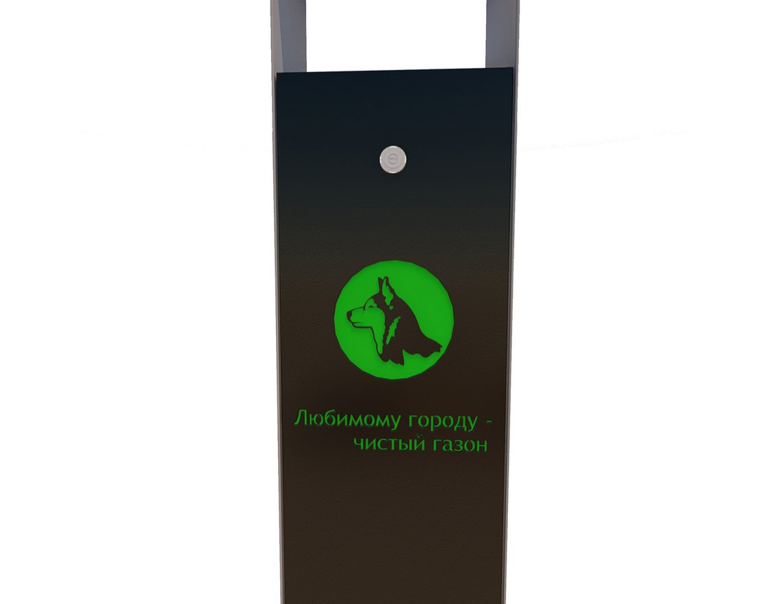 Урна для экскрементов – дань владельцев животных чистоте и экологии города. Характерный дизайн указывает на назначение конструкции. В качестве дополнительного идентификатора использован профиль собаки на контрастном фоне.