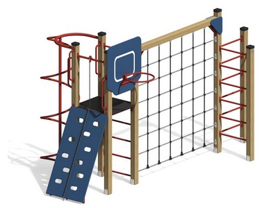 • Особенности комплектации: канат, шведская стенка, гладиаторская сетка, баскетбольное кольцо, скалодром, кольцевой лаз
