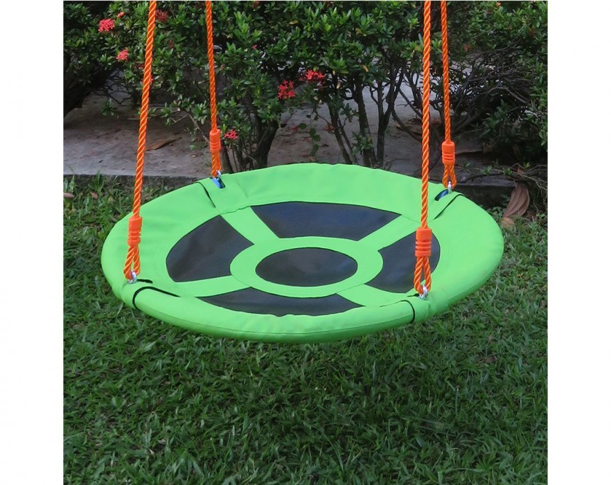 Комплекс включает в себя: веревочные качели (без спинки), качели - гнездо, а так же горка.