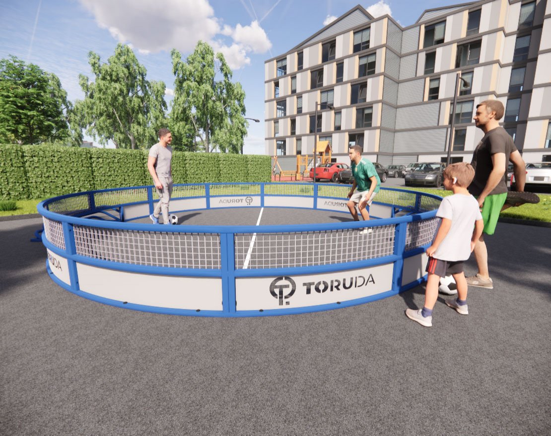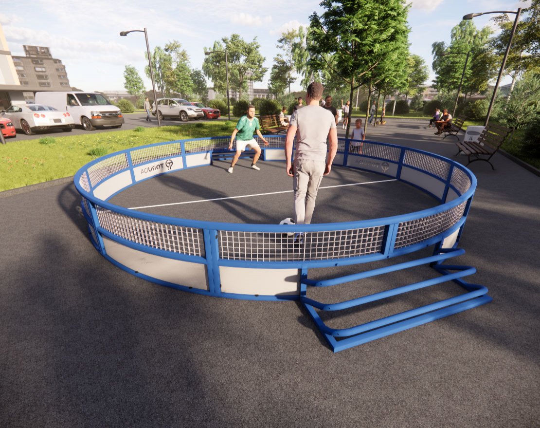 Площадка для панна-футбола имеет следующие параметры: длина – 700 см, ширина – 600 см, высота – 75 см. Идеально подходит для игры один на один, отработки обманных манёвров с мячом. Вес конструкции – 600 кг. Для большей устойчивости возможна антивандальная установка посредством крепления на анкера. Поэтому хорошим вариантом основания участка будет асфальт или любая другая ровная и твёрдая поверхность для надёжного монтажа. Модель можно купить для частных площадок и общественных игровых зон. Достаточная высота ограждений и особенность конструкции ворот препятствуют вылету мяча. Поэтому панна поле идеально подойдёт для игр детей и младшего возраста.