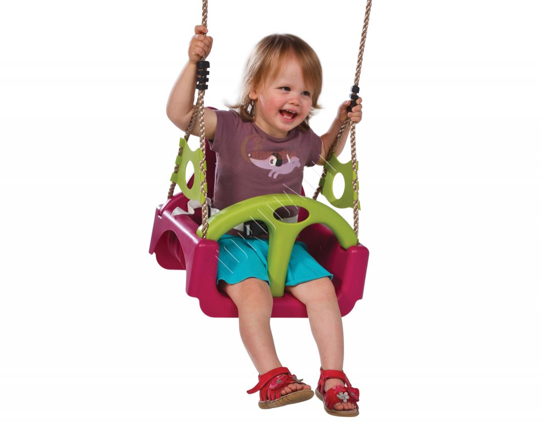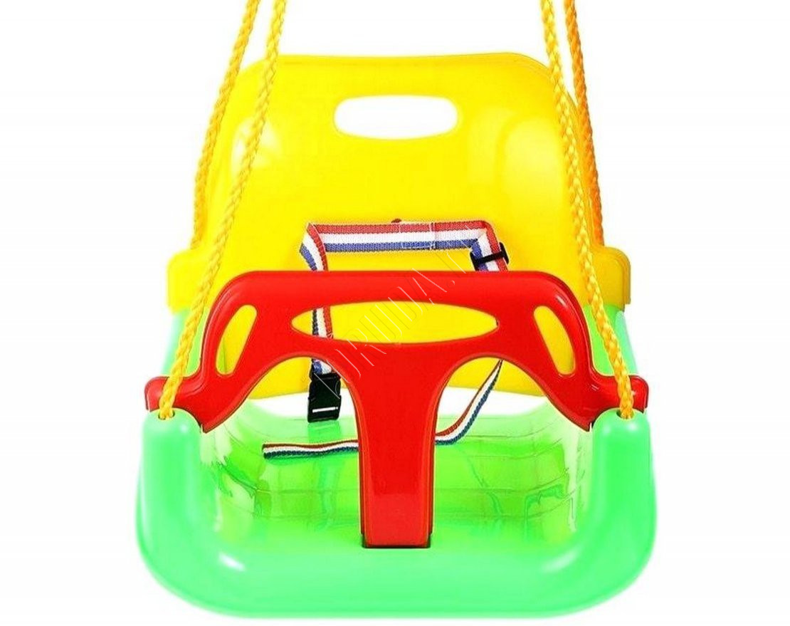 Качели состоят из трёх частей, в комплект входит ремень безопасности.