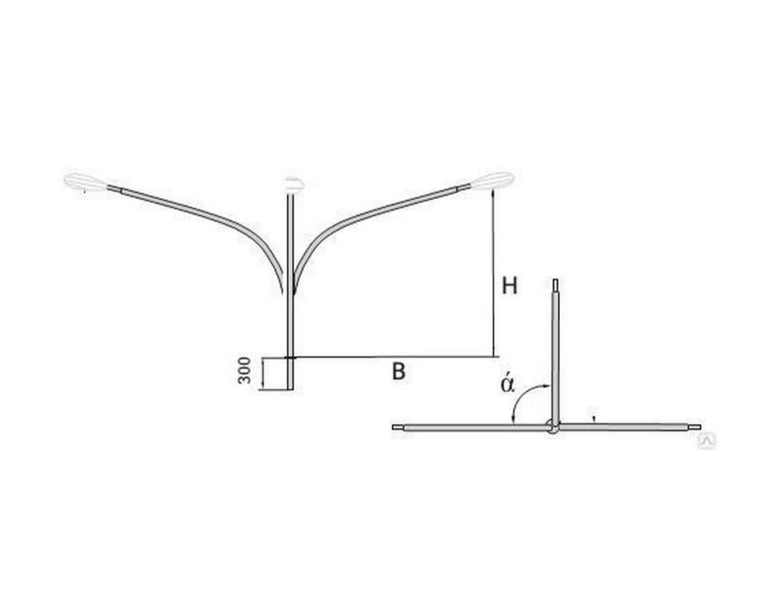 Кронштейны представляют собой сборную металлическую конструкцию, состоящую из одного или нескольких рожков (в зависимости от требуемого количества устанавливаемых осветительных приборов), с определенными линейными размерами высоты, вылета и с требуемым типом посадочного места (в зависимости от типа опоры).